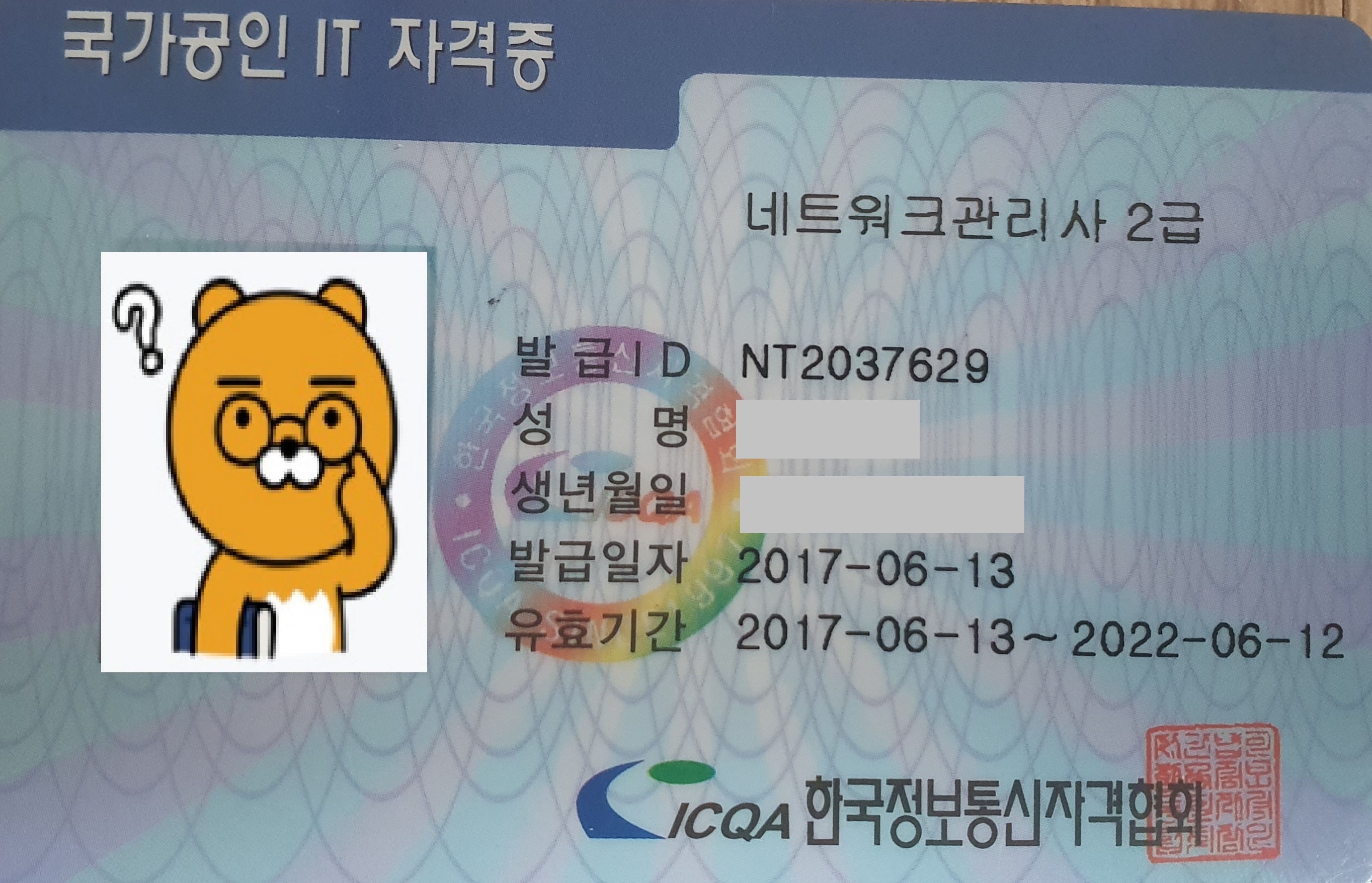 취득일 : 2017년 (유효기간 만료)